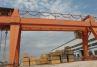 Grue à portique à double poutre de type MG composée de portique, grue de crabe, mécanisme de déplacement de chariot, cabine et système de commande électrique, le portique est en forme de boîte, la piste est sur le côté de chaque poutre et la jambe est divisée en type A et type U selon les exigences de l'utilisateur.